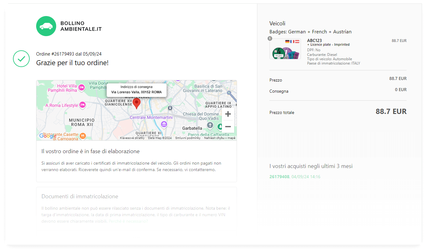 Una volta elaborato l’ordine, si riceverà una notifica di stampa del bollino ambientale.