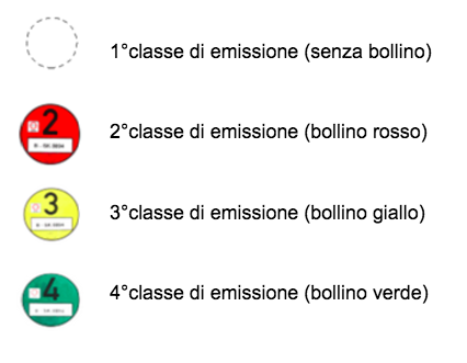 Ci sono più tipi di bollini ambientali (verde, giallo, rosso e nessuno) e ne riceverai un tipo in base alla direttiva sulle emissioni emanata dalla EEC/EC riportata nella carta di circolazione.